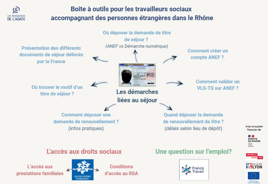 L’ADATE propose une boite à outils pour aider les travailleurs sociaux dans l’accompagnement des personnes étrangères. Elle met à disposition des ressources pratiques et faciles d’accès pour répondre aux situations rencontrées sur le terrain.